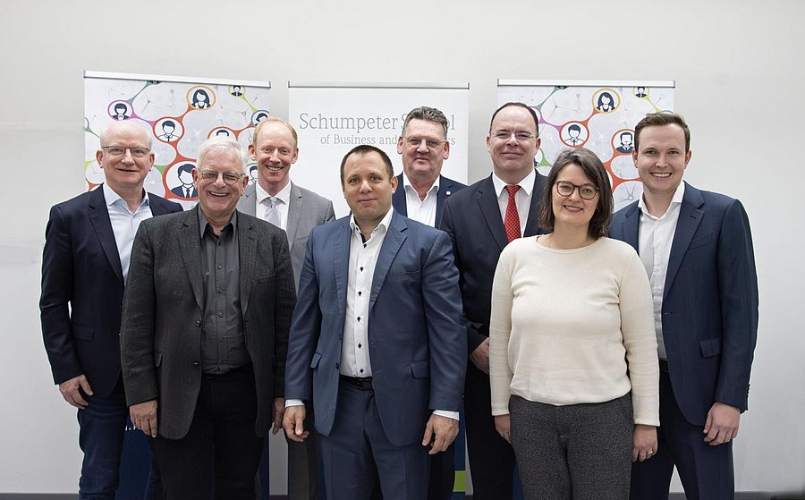 Abgebildet auf dem Foto: Die Forscher der Bergischen Universität zusammen mit der Projektarbeitsgruppe der Bergischen AGFW: (v. l. n. r.) Thomas Bartsch, Frank Gottsmann, Prof. Dr. André Betzer, Dr. Markus Doumet, Lutz Middelberg, Dr. Thorsten Böth, Dr. Aletta Thoma, Marc Herbrand)