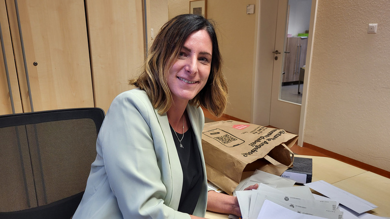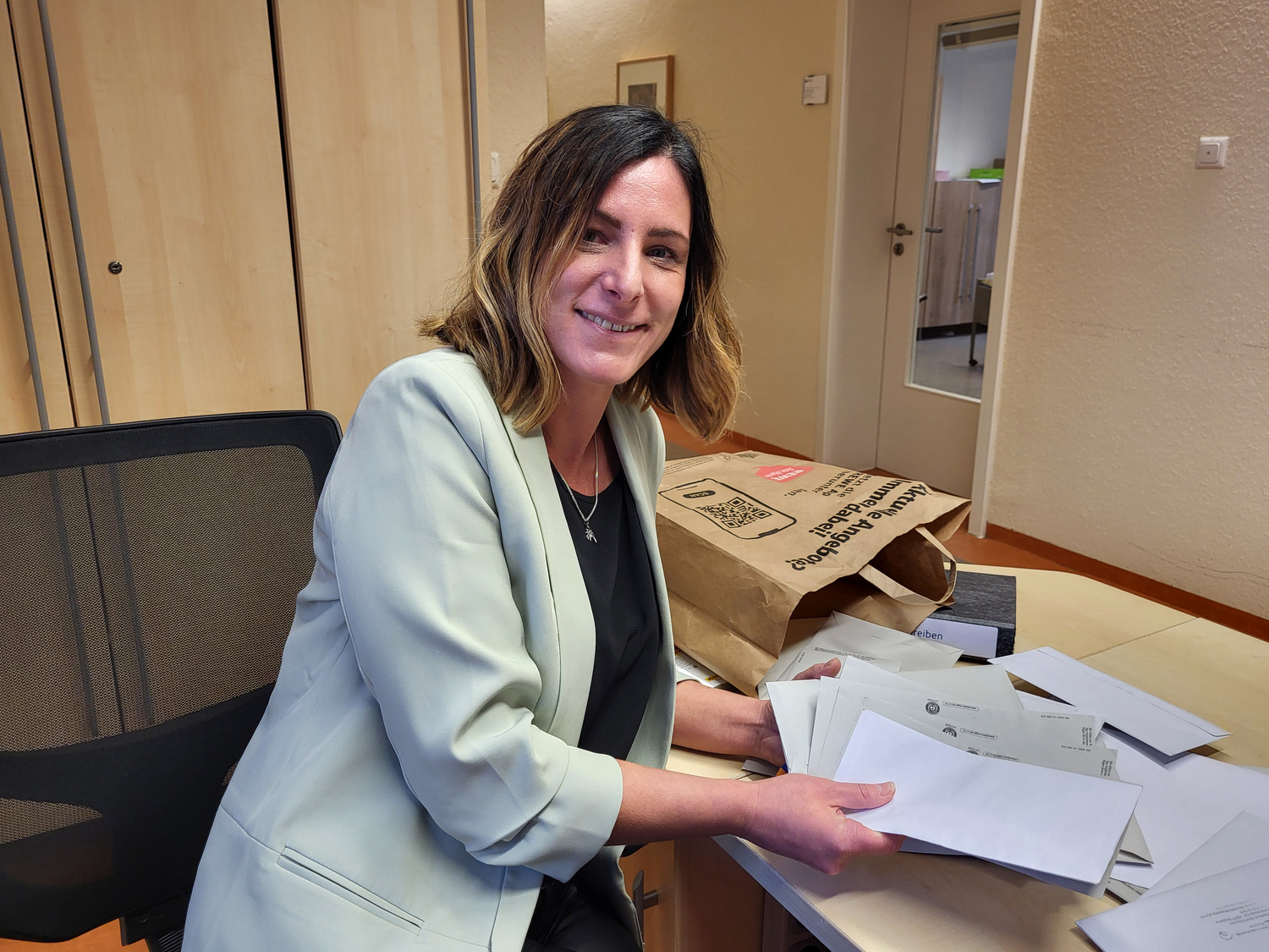 Sinja Ziegenhagen mit der Post, die sie häufig auch gesammelt in Einkaufstüten von Menschen erhält, für die sie eine rechtliche Betreuung übernommen hat