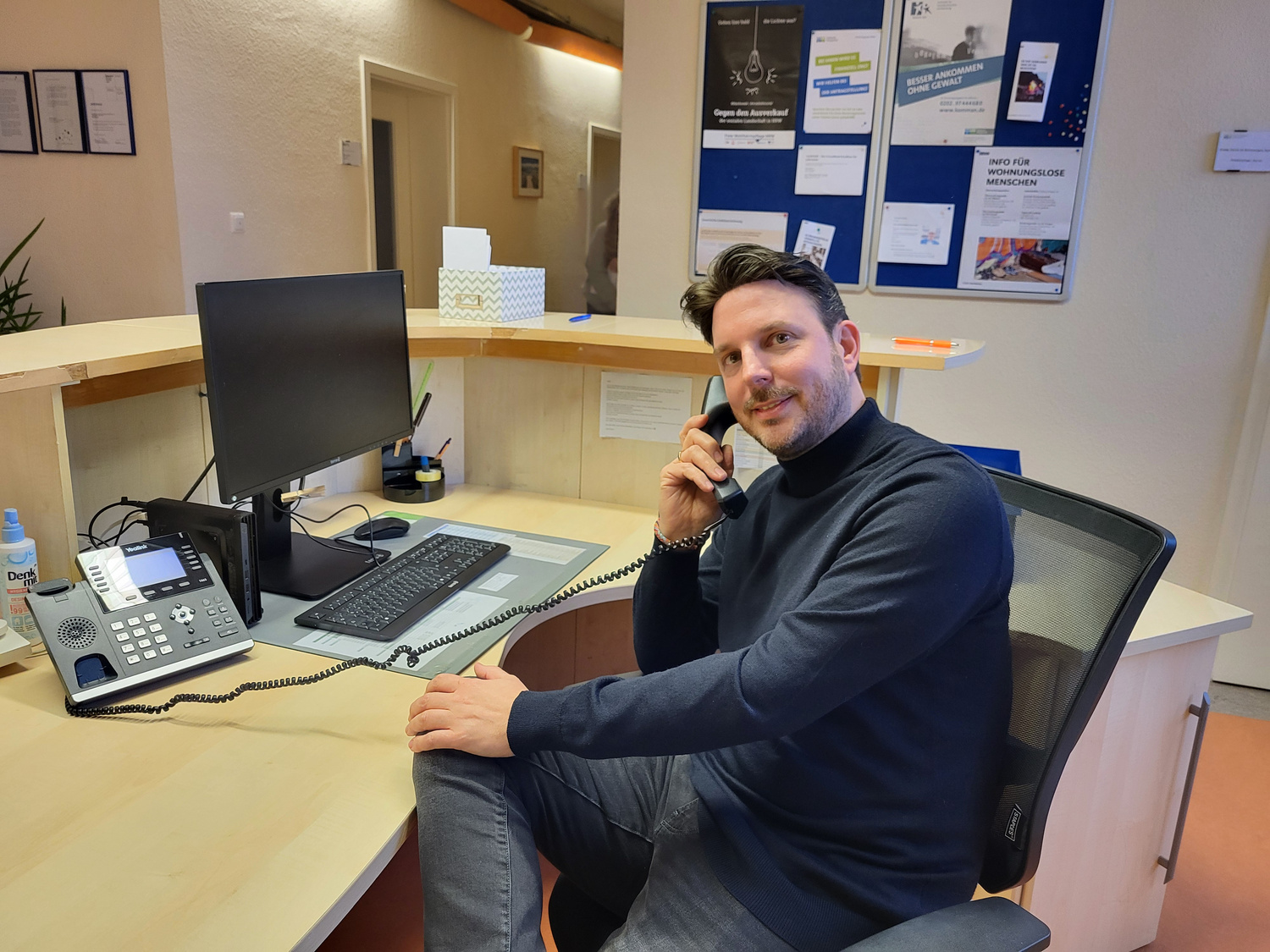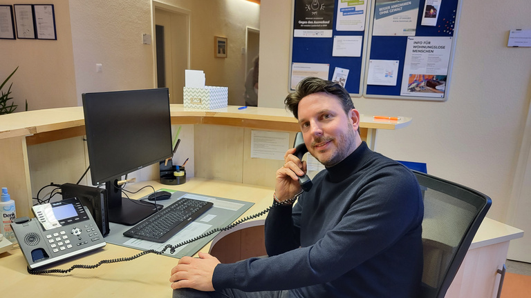 Telefonieren macht einen Großteil des Arbeitsalltag aus, wie Tim Querengaesser berichtet.