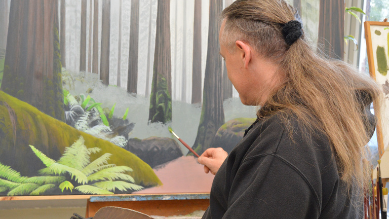 Udo Riepert vom Team der Maßnahme „Anstoß“ kennt diese Momente: „Die Menschen blühen hier bei uns in den allermeistern Fällen schnell auf. Sie sehen wieder einen Sinn in ihrem Dasein.“ Riepert kennt die Geschichten, die die Menschen mitbringen, wenn das Jobcenter ihnen eine Eingliederungsmaßnahme bei der „Diakonie Wuppertal – Soziale Teilhabe“ empfiehlt und finanziert: Viele der Teilnehmenden am Programm sind langzeitarbeitslos, haben mit psychischen oder anderen gesundheitlichen Problemen oder auch Suchtgeschichten zu kämpfen. „Sie haben sich isoliert“, weiß Riepert. Die Eingliederungsmaßnahme holt die Menschen aus dieser Isolation heraus. In der Maßnahme „Anstoß“ können sie ganz niederschwellig zurück in eine feste Tagesstruktur finden: Es gibt verschiedene kreative Bereiche, in denen sie sich einbringen können – beim Malen, Werken oder Bauen. Wer sich eher beim Thema Haushalt und Kochen wohlfühlt, kann hier seine ersten Schritte zurück in den Arbeitsalltag finden – jeder in seinem Tempo und mit dem Stundenumfang, der jedem einzelnen möglich ist. Die „Diakonie Wuppertal – Soziale Teilhabe“ bietet insgesamt drei Projekte im Bereich Eingliederungsmaßnahmen an: Neben „Anstoß“ gibt es auch Plätze im Sozialkaufhaus und im Stadtteilservice Vohwinkel. „Unser Ziel es, mit den Menschen wieder Perspektiven zu entwickeln“, erklärt Abteilungsleiterin Nadja Heil, „ganz individuell.“ Es gebe Situationen, in denen Menschen ihre Krankheit anerkennen und den Weg in eine Werkstatt finden würden. Und es gebe auch die Situation, dass Projekt-Teilnehmende den Weg zurück auf den ersten Arbeitsmarkt finden – begleitet von den Fachkräften der „Diakonie Wuppertal – Soziale Teilhabe“. „Wir haben dazu schon wunderbare Kooperationen mit heimischen Firmen gehabt und richtig gute Erfahrungen gemacht“, erzählt sie und blickt in die große Halle, in der mal ganz konzentriert und leise gearbeitet wird und ein anderes Mal heitere Gespräche entstehen. „Wer jeden Morgen hierherkommt, der zeigt Eigenantrieb und hat schon viel geschafft“, weiß Udo Riepter. Selbstwertgefühl, ein Ende der Isolation, Teilhabe an der Gesellschaft und eine Zukunftsperspektive: All das bewirke diese Arbeit.